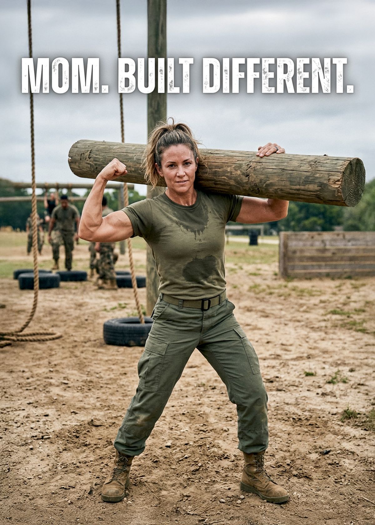 Mud, muscle, and main character energy. Swap your face onto this boot camp powerhouse and show everyone how Mom gets it done.