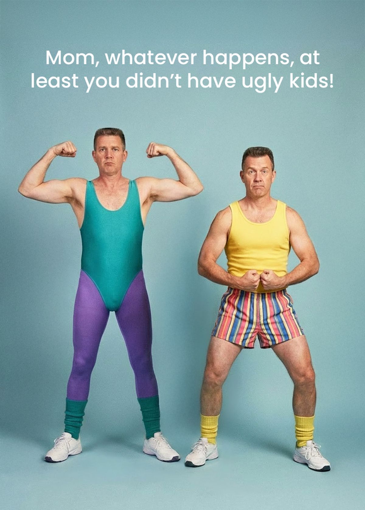 Give Mom a proper laugh by swapping your faces onto this gloriously awkward retro workout duo and showing off the family genes in full stretchy technicolour.