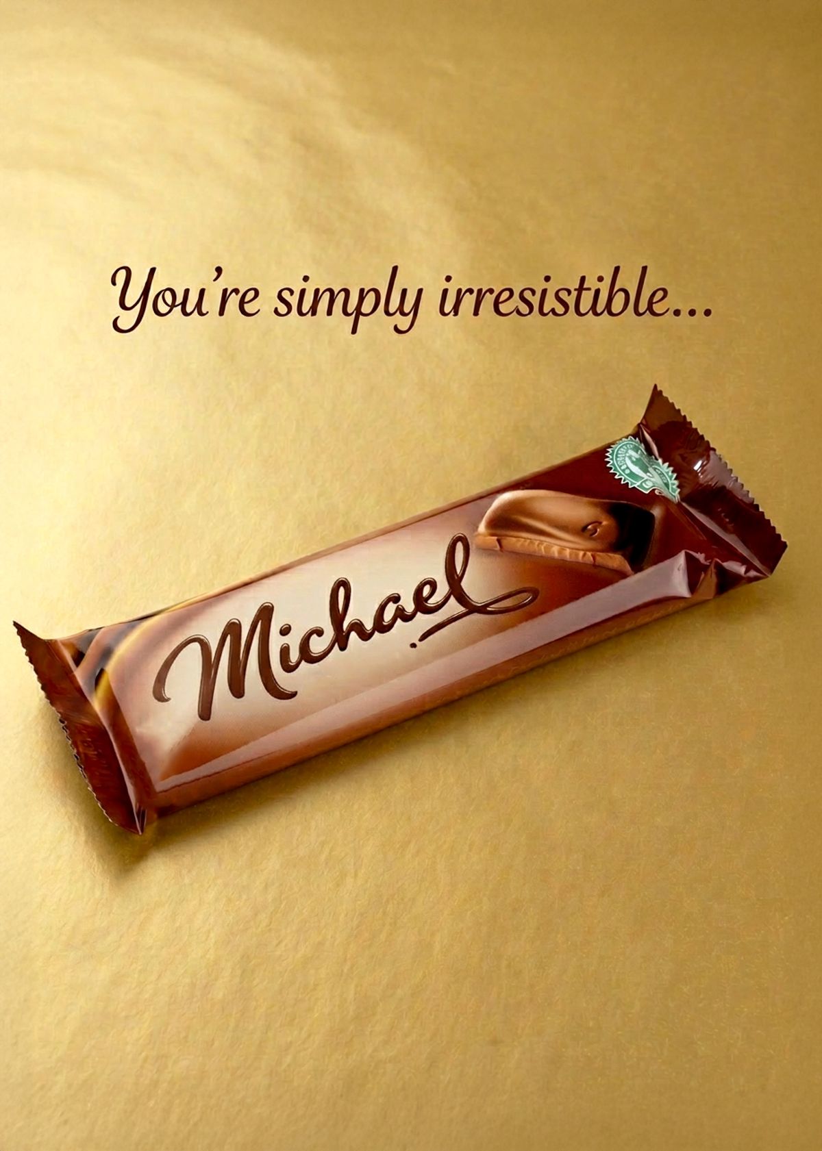 Sweet talk never looked so good. Add any name to this irresistible chocolate bar design and serve up a treat that is almost too tempting to unwrap.