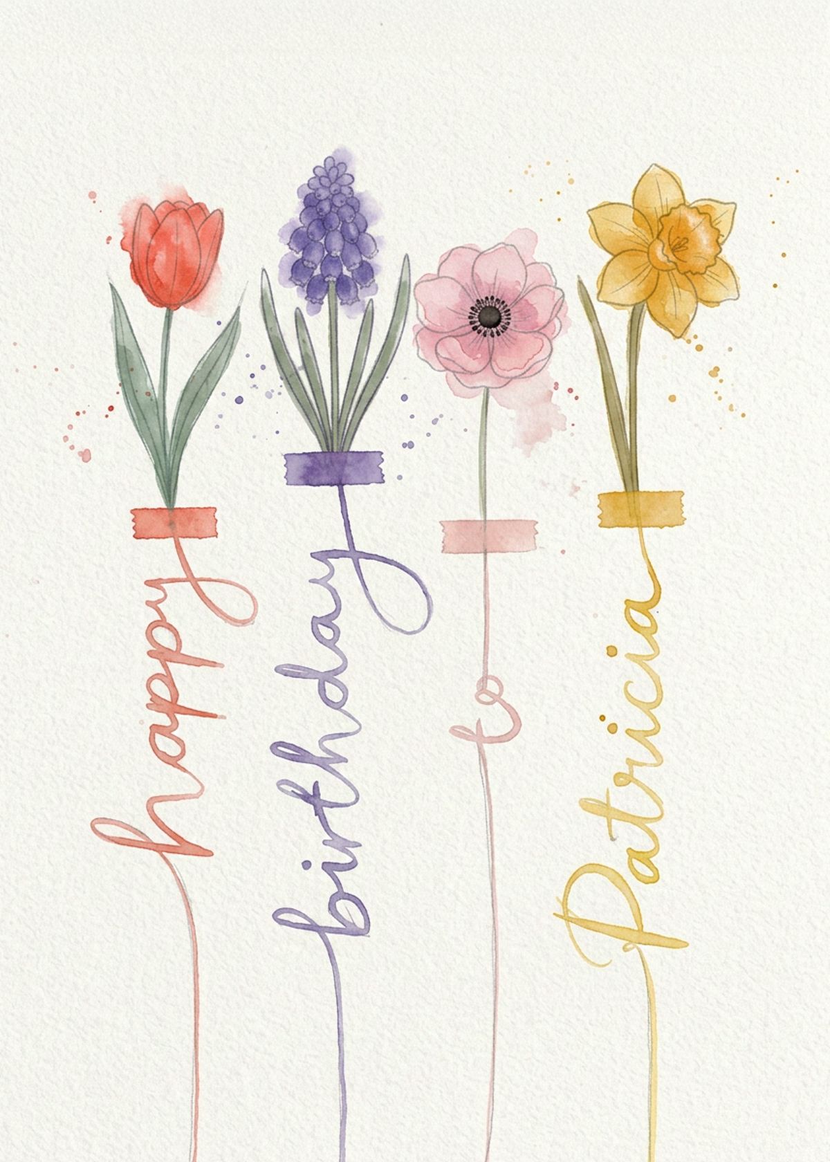 Turn meaningful names into a blooming keepsake with soft watercolor birth flowers and personalized script for every stem.